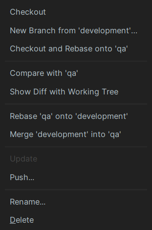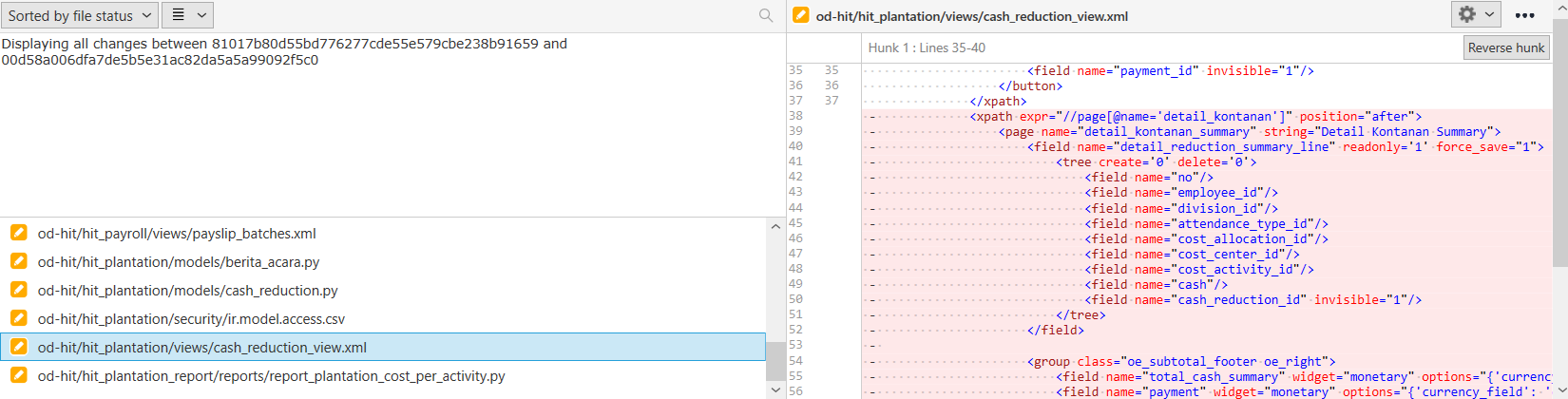 Nantinya kita bisa melihat list diff sama dengan di source tree, bedanya kita bisa download/mengambil kode tersebut dengan menggunakan fitur Get From Branch ketika klik kanan pada file/folder.