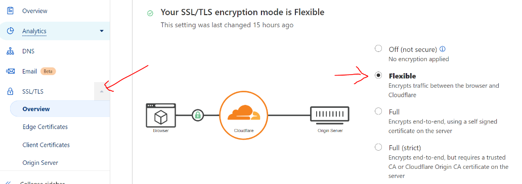 ubah SSL di cloudflare menjadi flexible (note jika terdapat error ubah settingan SSL)